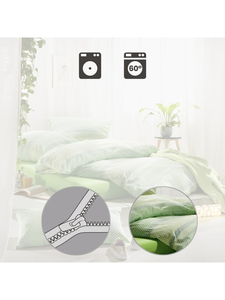 Постельное белье из хлопчатобумажной ткани Erwin Müller. Линейно расположенные круги гармоничных цветов создают гармоничный, вдохновляющий узор. Наслаждение теплыми летними ночами, потому что воздушное, легкое, приятное для кожи и уравновешивающее температуру качество прочной креповой структуры обеспечивает оптимальную циркуляцию воздуха. Вы быстро удивитесь простоте ухода: несложное постельное белье практически не гладить - просто стирать, сушить и быстро надевать благодаря застежке-молнии.
