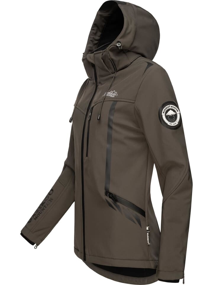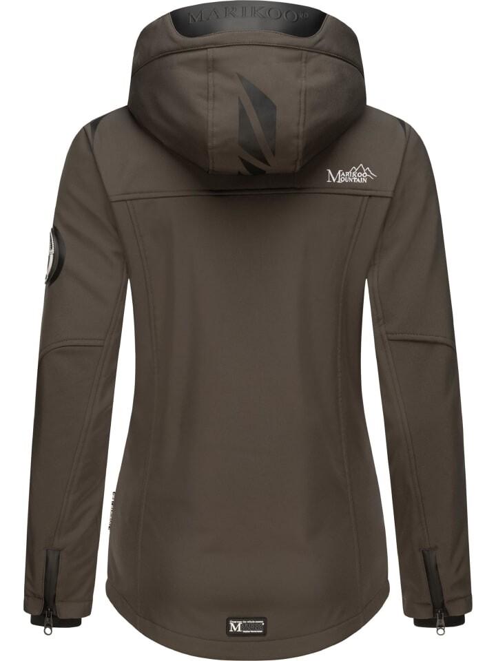 ВИД: Спортивная женская куртка из софтшелла от Marikoo с капюшоном на подкладке (съемным) не только шикарна благодаря контрастным цветным деталям, но и является отличным универсалом для переменчивой погоды в переходный период (весна/осень)