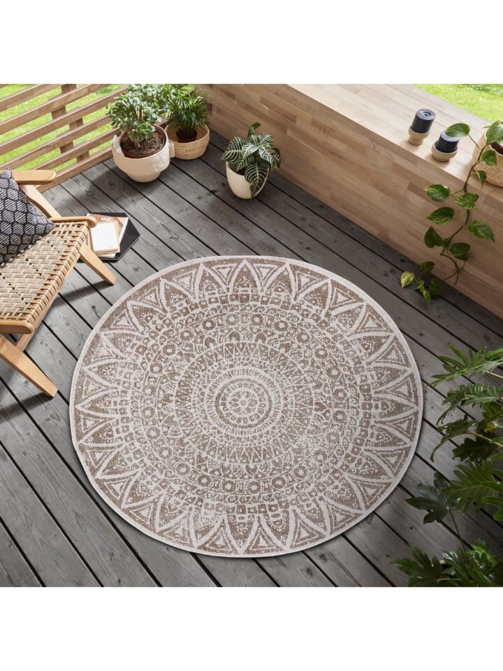 С помощью этого двустороннего коврика для дома и улицы вы сможете внести разнообразие в свой дом. Просто переверните его, и вы увидите этот современный тканый ковер по-другому. Сизаль выглядит так, как будто круглый ковер соткан из натуральных волокон, но сделан из 100% полипропилена. Качество изготовления обычно высокое, а двусторонний ковер подходит для сада, террасы и балкона, а также для всех внутренних помещений.