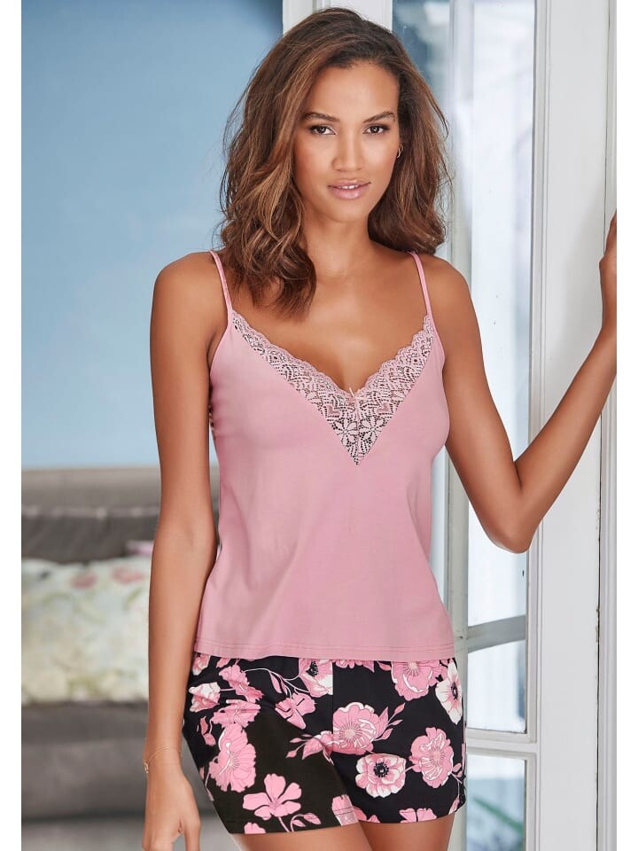 Шорты LASCANA, цвет rosa/schwarz/geblümt/gemustert