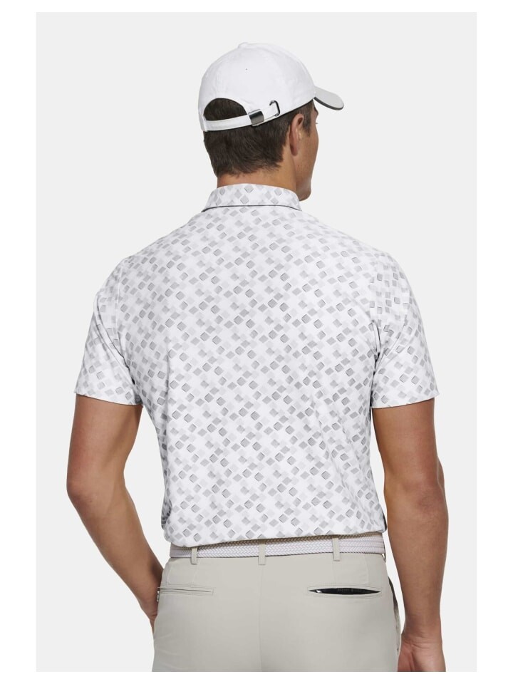 Наша высокоэффективная рубашка-поло Phil с модным узором изготовлена из инновационной техно-ткани от итальянского производителя Jersey Lomellina. Он дышащий, быстросохнущий, стабильный по размерам и обеспечивает надежную защиту от ультрафиолета. Переработанные волокна устойчивы и экологически безопасны. Облегающий крой и воротник с тремя отверстиями обеспечивают модный образ во время занятий спортом.