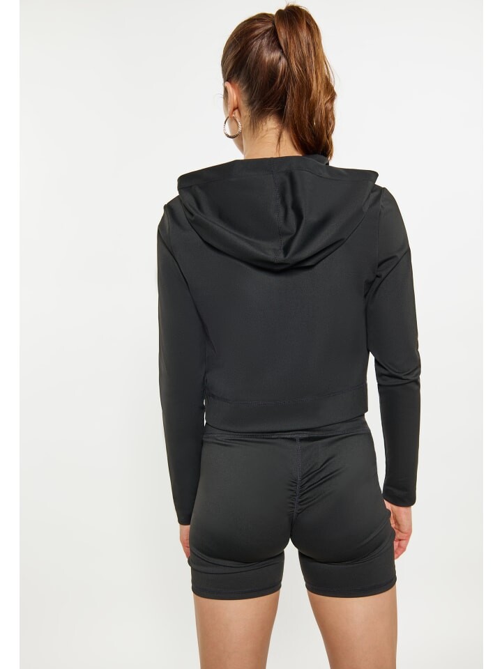 Универсальная укороченная толстовка с длинными рукавами, капюшоном и кулиской для индивидуальной посадки. Молния во всю длину обеспечивает дополнительную функциональность, а ребристая нижняя кромка придает изделию полированный вид. Эластичные манжеты обеспечивают надежную фиксацию на запястьях. Идеально подходит для занятий спортом.