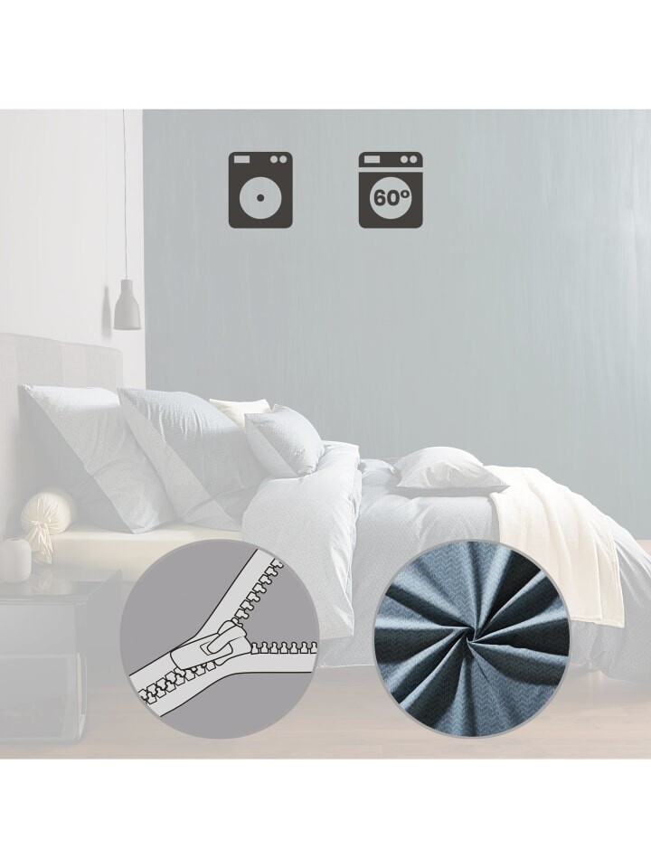 Двустороннее постельное белье REDBEST Renforce. Графический рисунок по всей поверхности в двух цветовых вариантах излучает чистый комфорт. Обратимый эффект позволяет мгновенно создать новый образ. Эта смесовая ткань, изготовленная из поликоттона renforcé, не только приятна для кожи, пропускает воздух и регулирует температуру, но также быстро сохнет и за ней легко ухаживать. Практичная застежка-молния облегчает надевание.