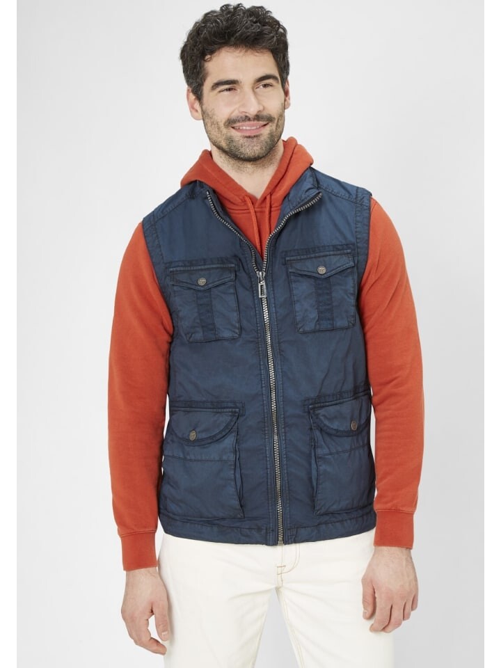 Будь то отпуск или повседневная деятельность на свежем воздухе – с этим жилетом для активного отдыха вы хорошо экипированы летом и в переходный период. Жилет в стиле полевой куртки имеет внешнюю ткань из чистого хлопка, дышащий и легкий. заботиться о. Бастер приобретает свой особый вид благодаря специальному процессу стирки, процессу пигментной окраски, что делает каждый экземпляр уникальным. Помимо внешних карманов, жилет имеет два внутренних кармана на застежках-липучках - Жилет для отдыха / переходная куртка