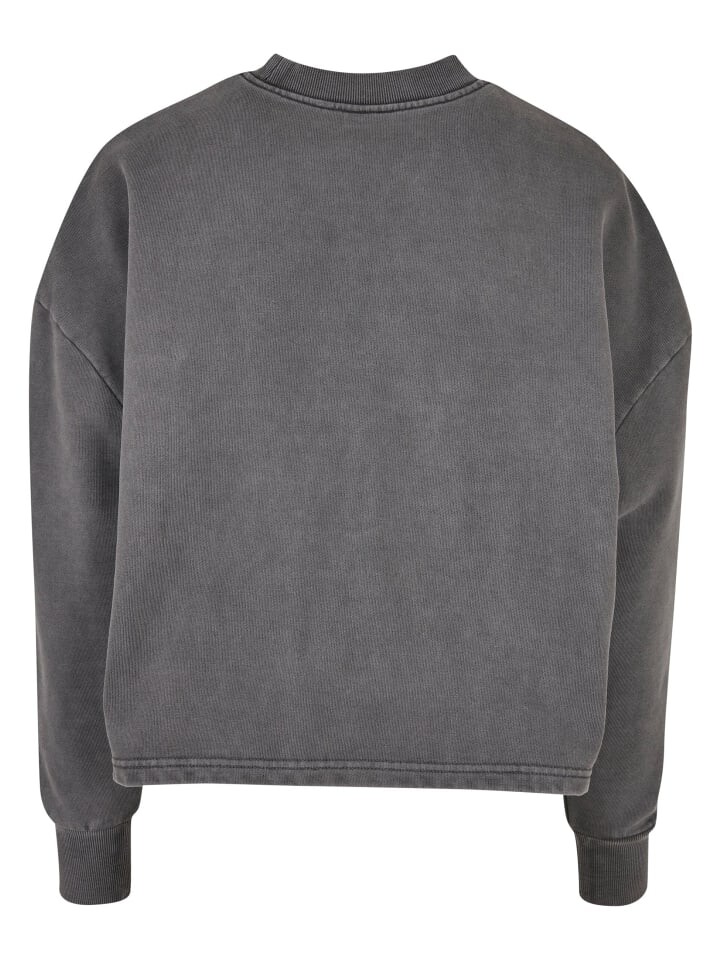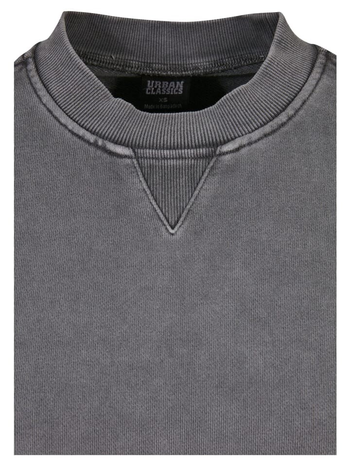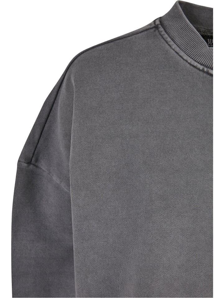 Женская рубашка с круглым вырезом имеет спортивный, повседневный вид благодаря выбеленной расцветке, массивному крою оверсайз с заниженной линией плеч и слегка разрезанными боковыми швами. V-образная вставка на ребристой горловине спереди расставляет акценты, а широкие манжеты также выполнены в рубчик. Женский свитер с круглым вырезом выполнен из плотной хлопковой махры.