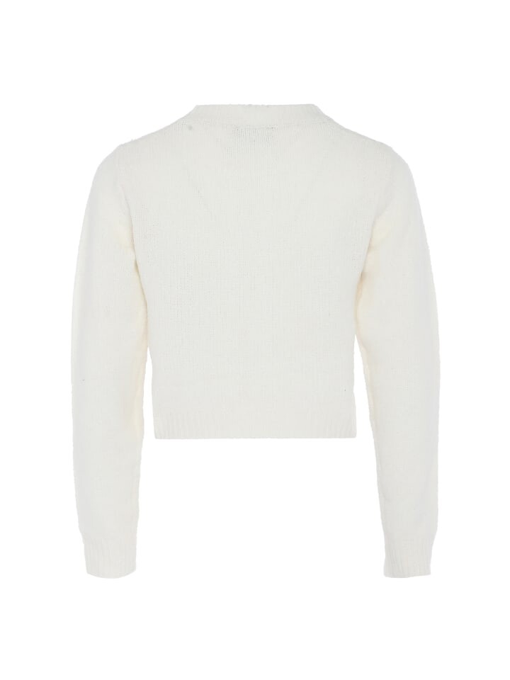 Этот свитер с длинными рукавами создаст уютный и структурированный образ. Ткань имеет косичную вязку, что придает ей возвышенный вид и дополнительный объем. Ребристая трикотажная кромка, манжеты и вырез горловины обеспечивают удобную посадку. Разрозненные украшения, такие как пайетки или бусины, придают декоративный вид этой теплой одежде, идеально подходящей для прохладных погодных условий.