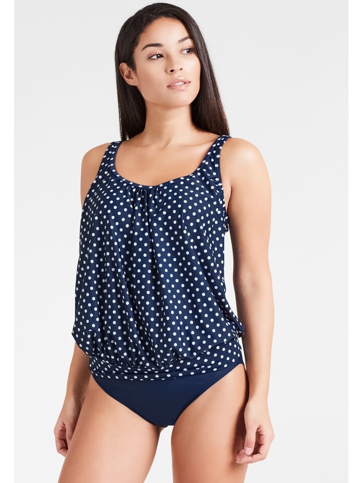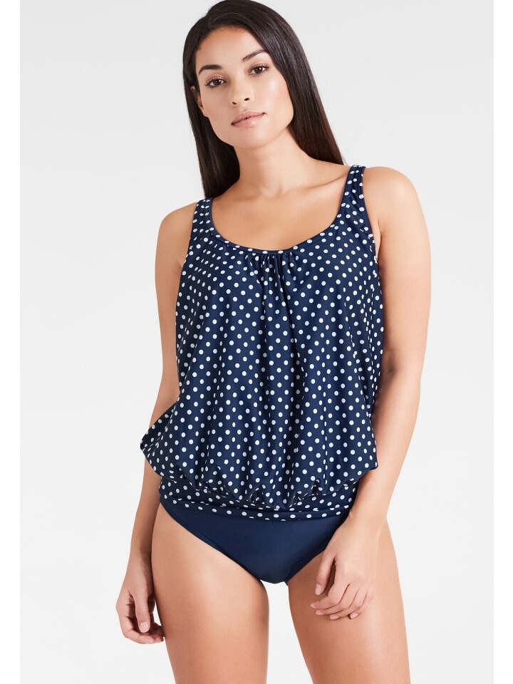 Купальники от LASCANA модного женственного точечного дизайна в двух цветах каждый. Танкини с удобным верхом актуальной формы oversize: чуть более широкий крой, прикрывающий живот, с облегающим подолом. Встроенные мягкие чашки и эластичная резинка под грудью по всему периметру. Вставка на лифе в области груди и верхней части спины. Регулируемые бретели. Подходит для чашки D. Брюки на подкладке спереди.