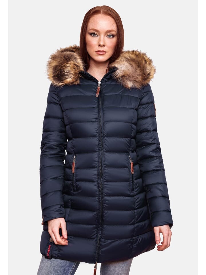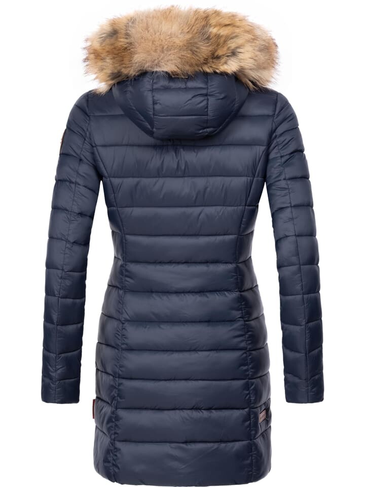 МАТЕРИАЛ: Стеганое пальто с матовым мерцающим внешним материалом, высокий комфорт при ношении благодаря мягкому и мягкий материал, пушистый теплый искусственный мех на капюшоне