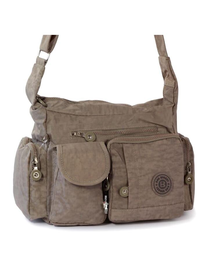 ОПИСАНИЕ ТОВАРА: Элегантная и стильная женская и молодежная сумка через плечо от бренда Bag Street с артикулом OTJ205L имеет размеры - 30см х 12см х 22см. Красивая сумка серо-коричневого цвета изготовлена из нейлона и закрывается на молнию и застежку-липучку.