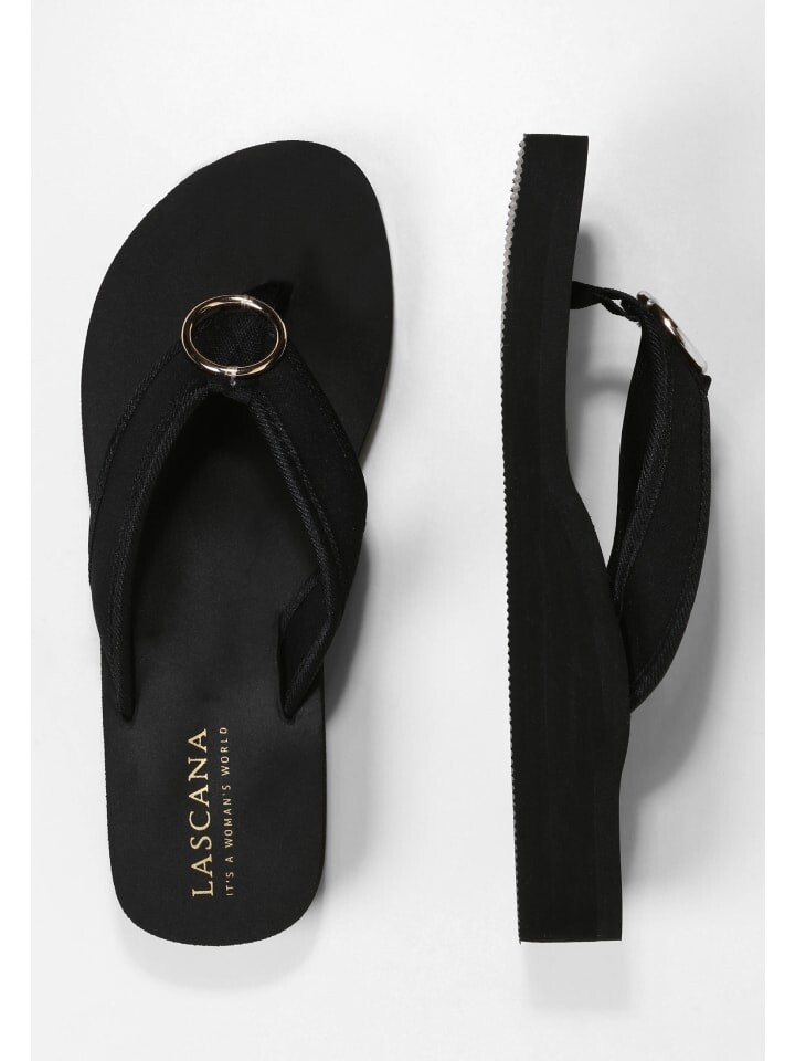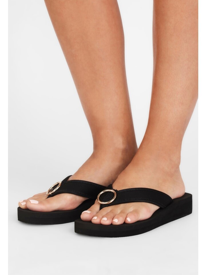 Разделители пальцев ног от LASCANA. Особенно мягкий, гибкий и легкий. С модным кольцом. Водоотталкивающий материал. Отлично подходит для пляжа и бассейна. Текстильный верх. Синтетическая подошва и подошва.