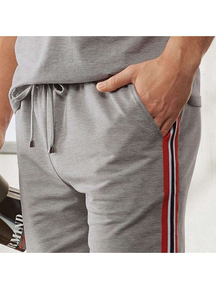 Мужские брюки для отдыха Erwin Müller Sweat, короткие. Свободные брюки для отдыха станут идеальным спутником после работы на диване или занятий спортом. Контрастные цветные полосы вдоль штанин завершают спортивный образ и добавляют современные акценты. С пришитым эластичным поясом, боковыми карманами и кулиской. Мягкое качество гарантирует удобную посадку. За ним легко ухаживать, он быстро сохнет и сохраняет отличный вид даже после многочисленных стирок.
