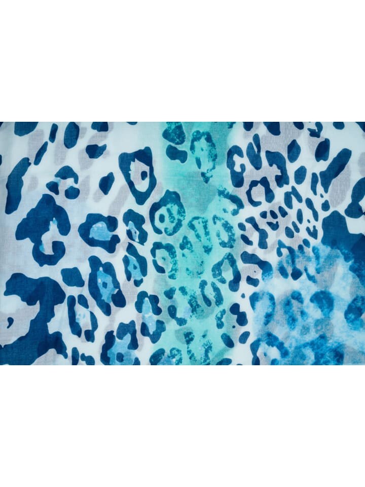 - Мягкий длинный шарф с короткой бахромой на концах из легкой ткани с современным животным принтом и цветовым градиентом