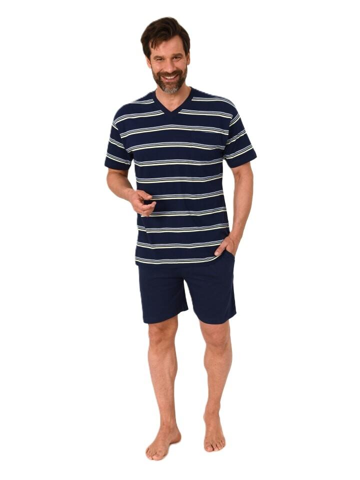 Мужская короткая пижама Normann с короткими рукавами в полоску и V-образным вырезом