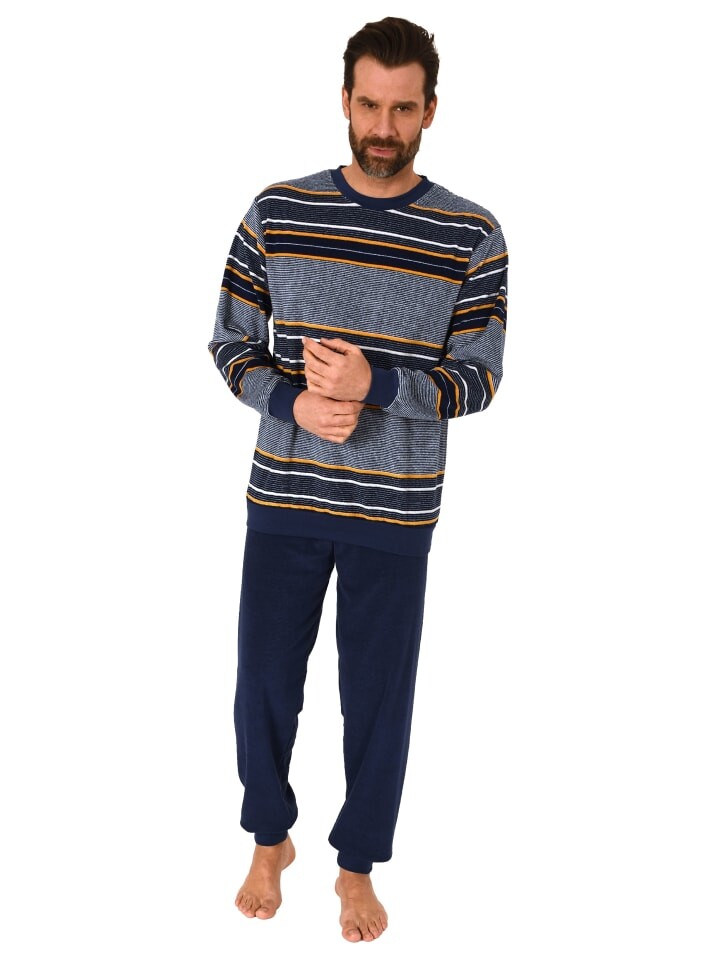 Мужские пижамы с манжетами из махровой ткани, также в больших размерах, в полоску