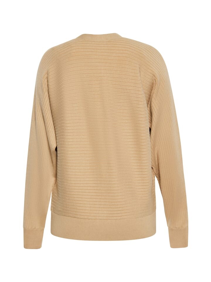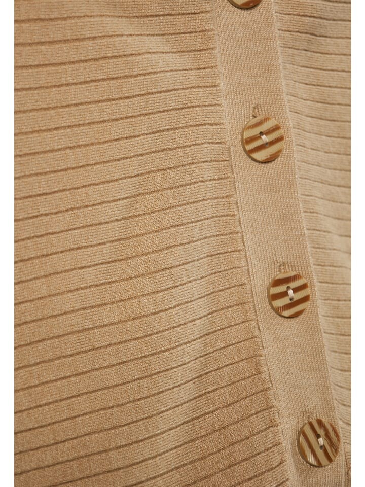Представляем изысканный кардиган с длинными рукавами и структурированным ребристым узором. V-образный вырез элегантно заканчивается застежкой спереди на круглые пуговицы. Этот кардиган, созданный с большим вниманием к деталям, имеет эластичный пояс и манжеты для удобной посадки. Трикотажная ткань обеспечивает эластичность и непревзойденный комфорт, что делает ее идеальной для повседневной носки или для ношения поверх другой одежды.