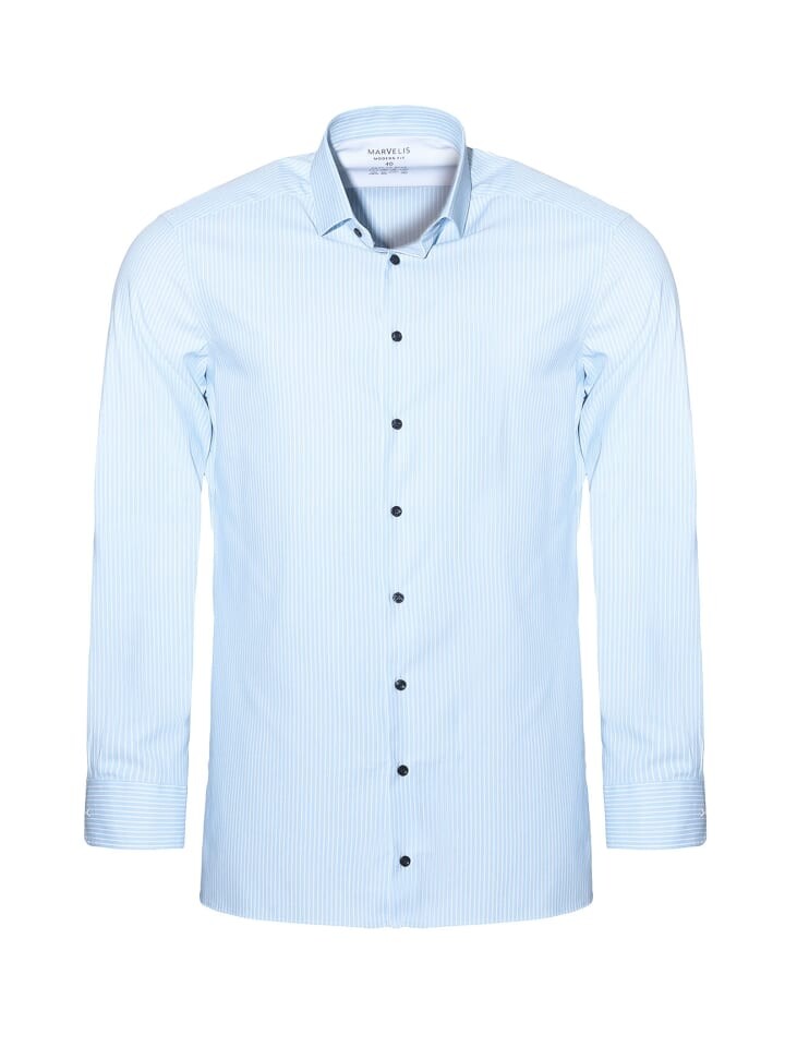 Рубашка, которую легко носить — Современный крой — Длинный рукав — В полоску — Голубой/Белый