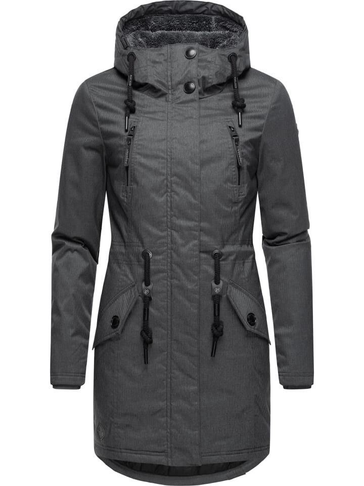 ВИД: Стильное пестрое пальто для отдыха на шнурках со шнурками и капюшоном на теплой подкладке от популярного городского модного лейбла Ragwear, 100% веганское производство. МАТЕРИАЛ: Зимняя парка из нескользящей, водонепроницаемой внешней ткани с водным столбом 4000 мм из смесовой смеси. с приятной шелковистой гладкой внутренней подкладкой и приятным мягким плюшевым мехом. -Подкладка
