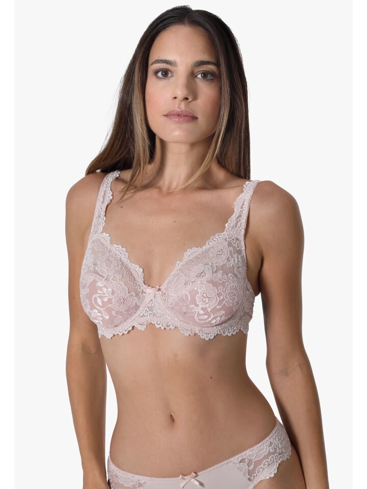 Бюстгальтер на косточках из высококачественного кружева в сочетании с эластичным микротач-материалом. Очень женственный вид, поскольку весь бюстгальтер выполнен из кружева.