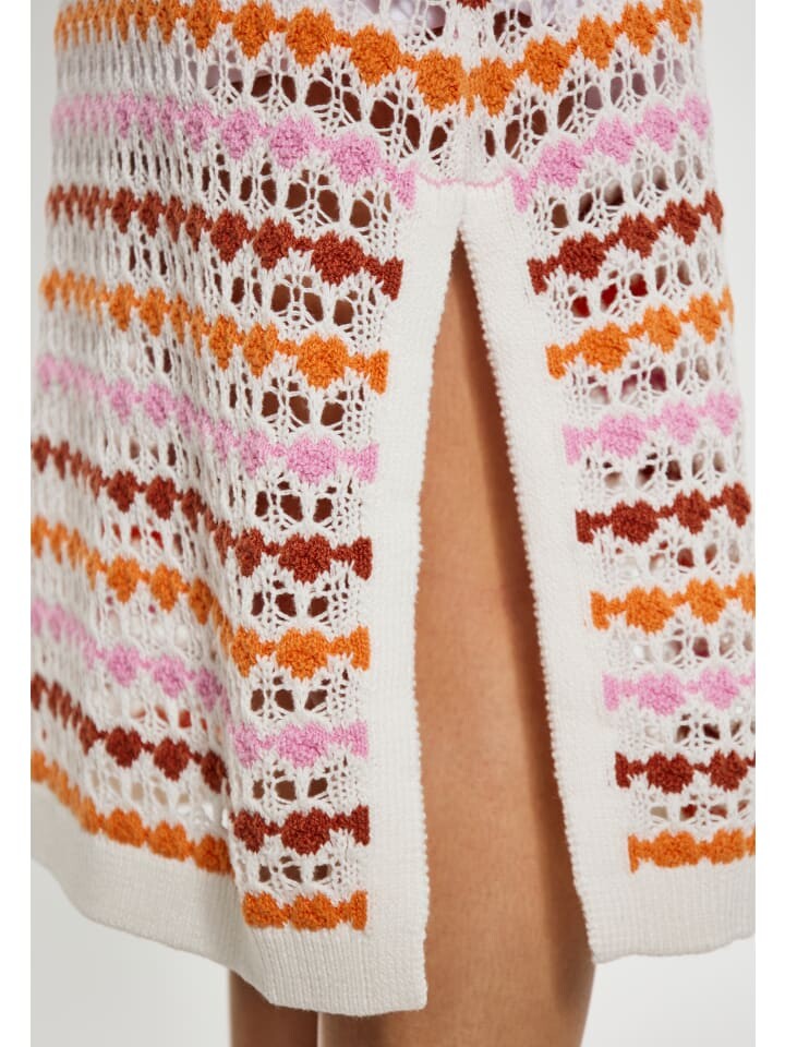 Представляем стильную юбку из структурированного узорчатого трикотажа. Эта модель имеет горизонтальную полоску. Эластичный пояс обеспечивает удобную и эластичную посадку, а прямой силуэт облегает бедра и талию. Изготовлено из трикотажного материала, обеспечивающего гибкость и комфорт.