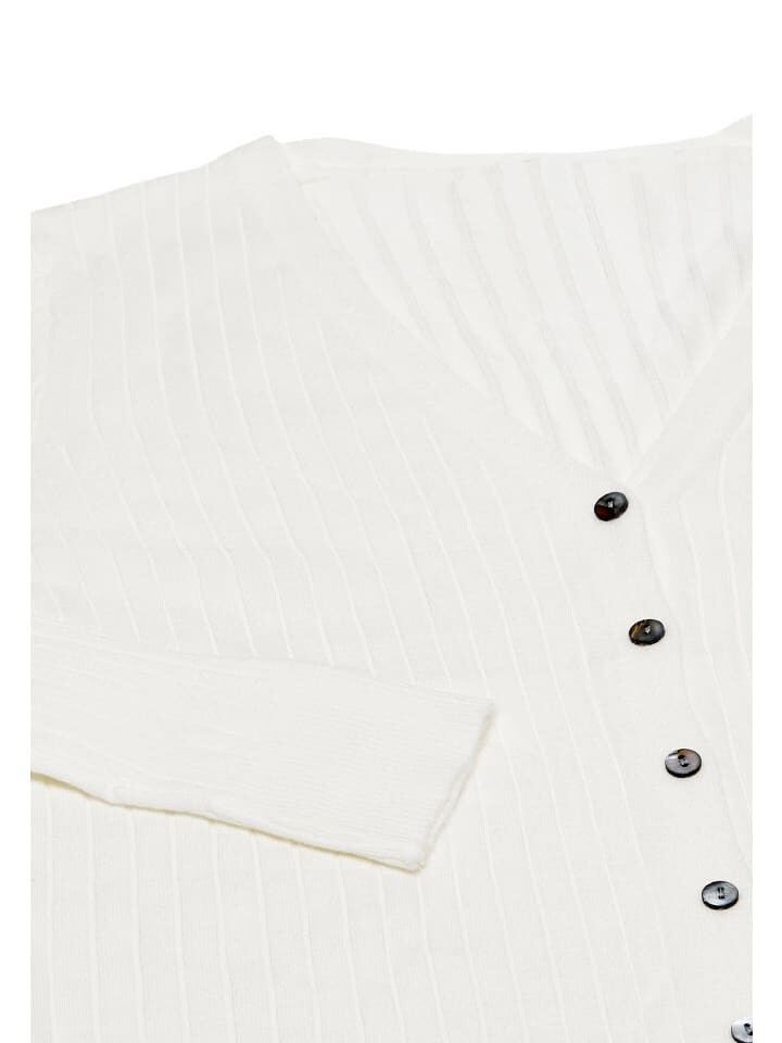 Порадуйте себя привлекательностью этого вязаного кардигана с ребристой текстурой и классическим V-образным вырезом. Передняя планка имеет вертикальное расположение пуговиц, что придает ей дополнительный шарм. Благодаря облегающим ребристым манжетам и нижней кромке эта верхняя одежда удобно смотрится поверх других предметов одежды. Мягкая эластичная ткань обеспечивает комфорт, а длинные рукава добавляют тепла вашему ансамблю.