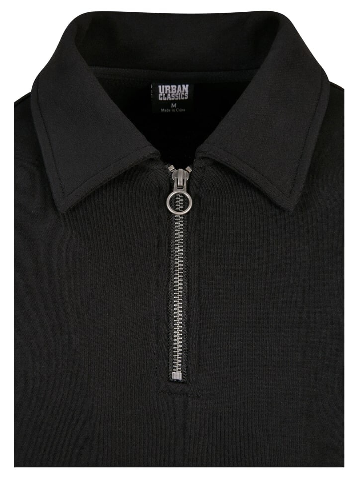Мужской свитер имеет воротник с лацканами на молнии, а также модный крой оверсайз со спущенной линией плеч и очень длинными рукавами. Как и подол, они оснащены широкими манжетами в рубчик. Проверенная смесь хлопка и полиэстера обеспечивает оптимальный комфорт при ношении.