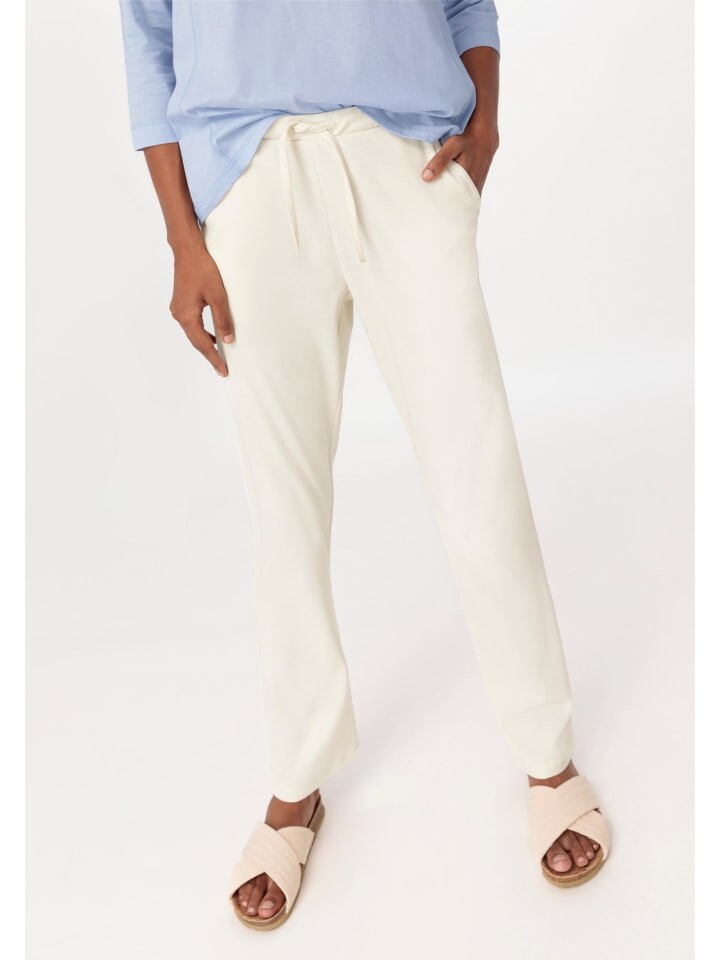 Чистый вид, чистый комфорт и практичность: неотбеленный и неокрашенный органический хлопок, переработанный в мягкий трикотаж интерлок. Длинные пижамные брюки с боковыми карманами и регулируемыми завязками на эластичном поясе. Это все, что вам нужно для спокойной ночи.