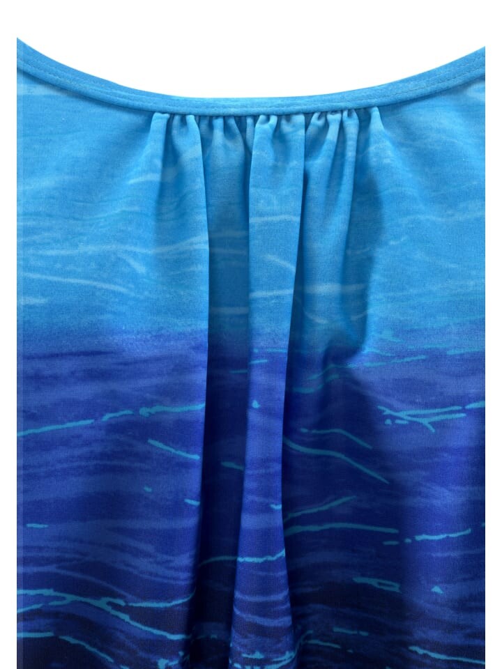 В красивом принте с цветовым градиентом. Удобный по фигуре топ, прикрывающий живот, свободно ниспадающий крой оверсайз с плотно прилегающей манжетой. Мягкие чашки, регулируемые бретели и эластичная резинка под грудью по всему периметру. Усиление лифа в области груди и верхней части спины. Подходит для чашки размером до D.