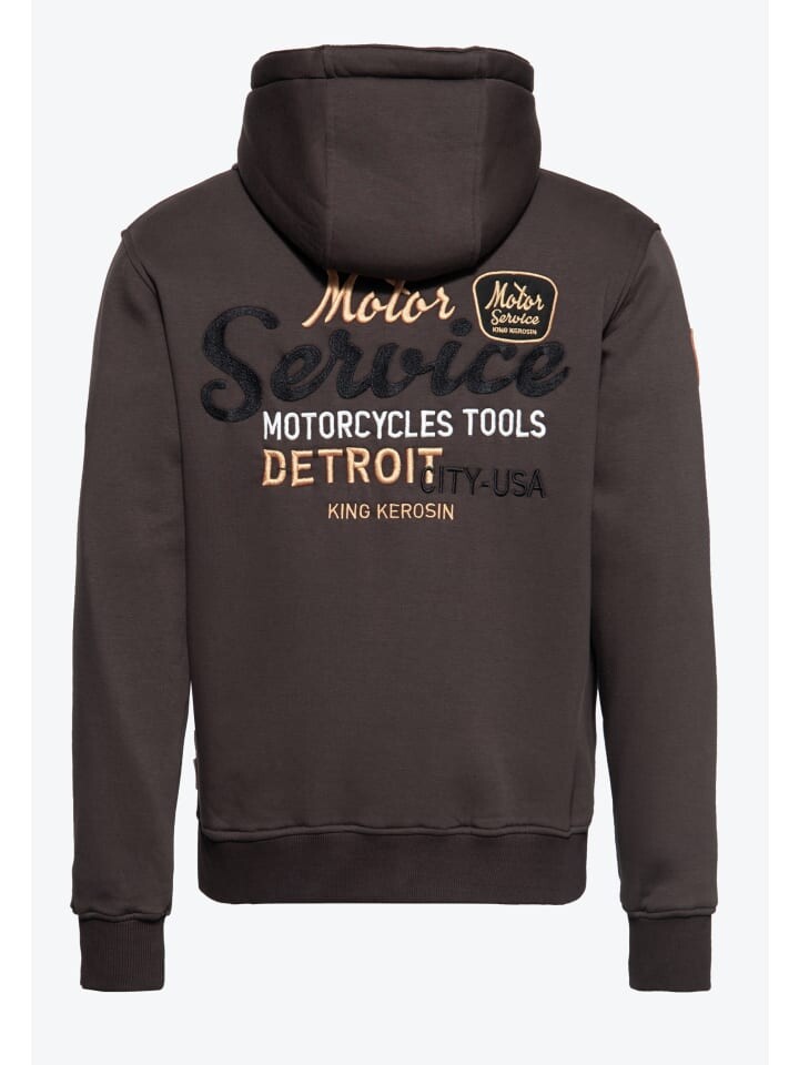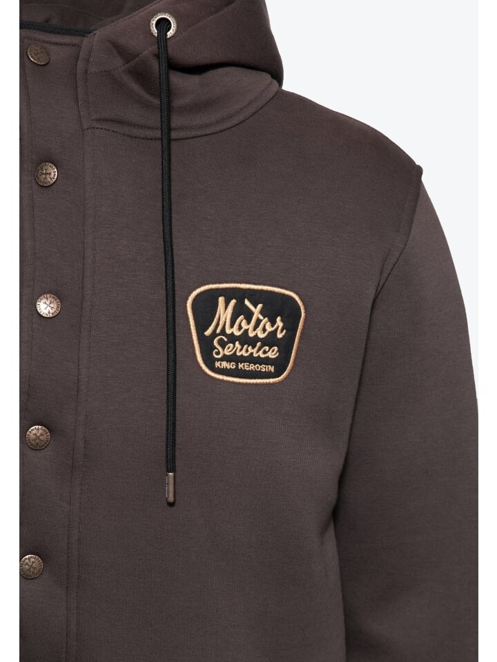 Толстовка, которая может больше, чем просто выглядеть стильно? King Kerosin представляет функциональную спортивную куртку в аутентичной ретро-атмосфере! Он изготовлен из приятного для кожи трикотажа и имеет удобную и удобную посадку. Имеет капюшон на шнурке и карманы для рук на молнии. Классные кожаные нашивки и качественная вышивка в винтажном стиле, а также ребристые манжеты по подолу и рукавам завершают повседневный образ. Куртка застегивается на потайную молнию и кнопки спереди.