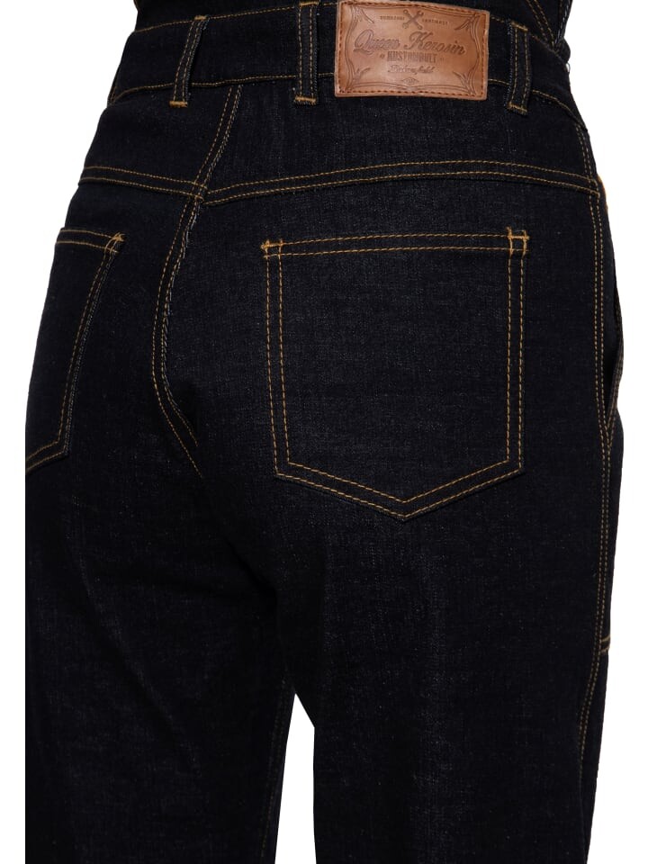Джинсовые комбинезоны Queen Kerosin сочетают в себе классический шарм рабочей одежды с функциональными деталями и идеально подходят для тех, кто ценит прочный, но стильный внешний вид. Эти комбинезоны темного цвета подчеркнуты контрастной строчкой и имеют прямую посадку, обеспечивающую универсальность и комфорт. Нагрудный карман предлагает практичное место для хранения мелких предметов, а регулируемые ремни обеспечивают индивидуальную посадку. Брюки имеют планку на пуговицах с левой стороны, чтобы их можно было легко надевать и снимать. Особая деталь – небольшая вышивка над правым карманом. Кожаная нашивка с этикеткой на спине завершает дизайн. Эти джинсовые комбинезоны от Queen Kerosin подобны верному компаньону в хорошо укомплектованной мастерской: прочные и надежные, готовые к любым повседневным задачам, будь то работа над творческим проектом или наслаждаясь свободным временем под голубым небом.