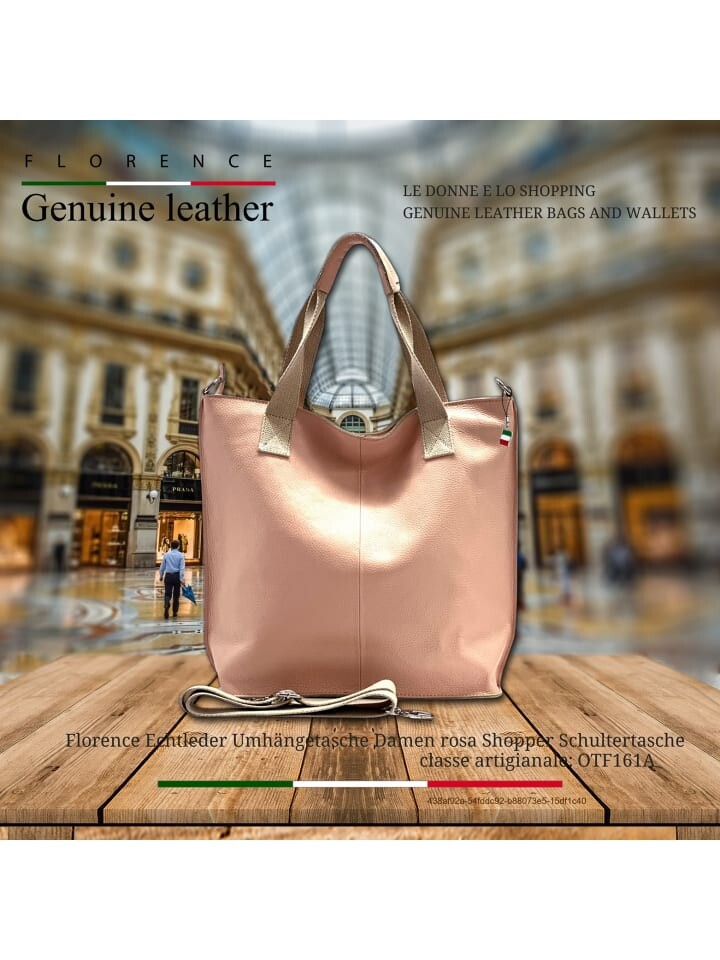 Сумка через плечо, кожаная женская сумка-шопер розового цвета - Florence