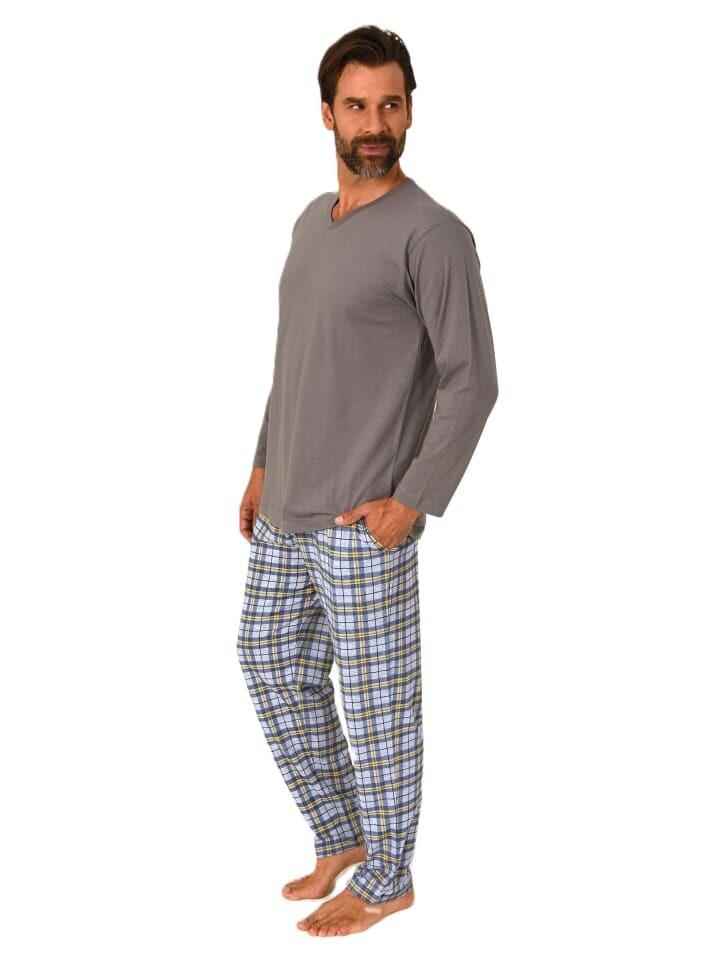 Мужская длинная пижама Normann с трикотажными пижамными штанами в клетку - также больших размеров