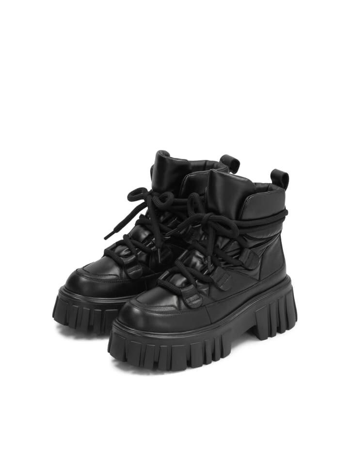 Черные женские сапоги придадут любому наряду модный и оригинальный характер. Верх выполнен из натуральной лицевой кожи и пышной ткани, что гарантирует невероятную мягкость. Комфорт повышают шнурки, позволяющие подогнать обувь под форму стопы, а также прочная подошва, защищающая ноги от холода. Теперь вы можете свободно бродить по городу.
