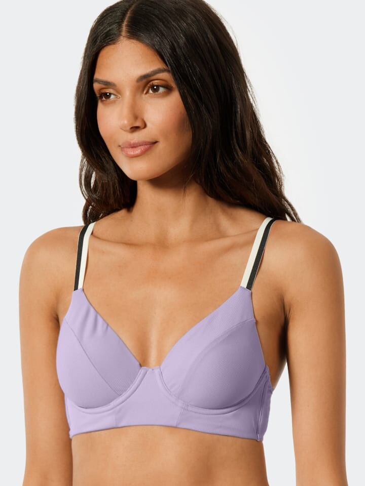 Спортивный стиль ретро: этот верх бикини на косточках — ваш новый летний фаворит! Благодаря модному ребристому дизайну и ремешкам в черно-белую полоску, оно прекрасно подчеркивает фигуру. В то же время он удивительно гибок: бретели можно регулировать прямо, крест-накрест или в виде бретельки. Косточки и мягкая подкладка обеспечивают идеальную посадку. Верх не требует застежки: просто наденьте его, и вы получите пляжный образ в лучшем, устойчивом качестве SCHIESSER!