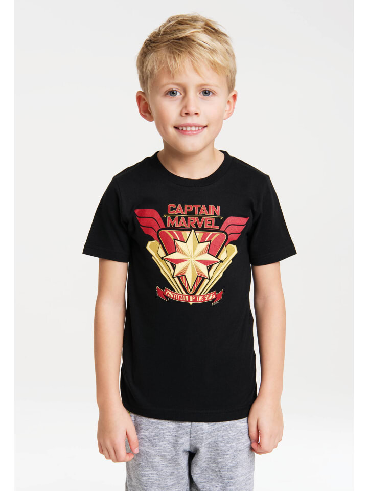 - С принтом «Капитан Марвел» спереди в качестве изюминки