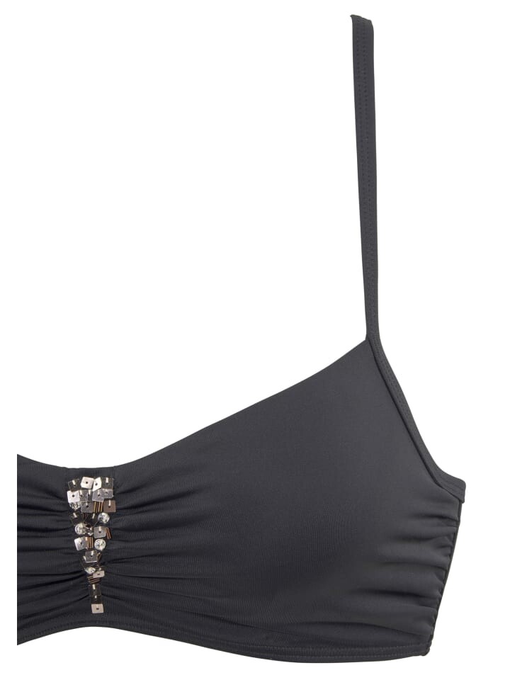 В женственном стиле с элегантным декором из пайеток в области чашек. Топ с окантовкой по бокам и регулируемыми бретелями. Компактные брюки. Верх на подкладке. Бикини с красной подкладкой спереди.