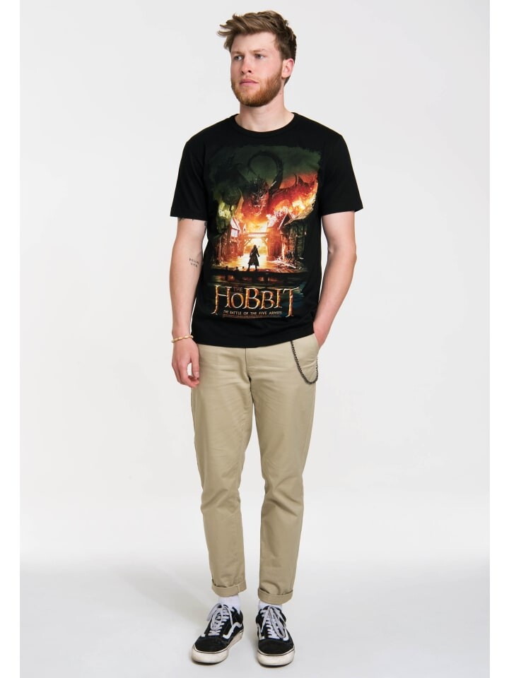 На футболке с круглым вырезом «Хоббит: Битва пяти воинств» от Logoshirt напечатан знаменитый постер фильма «Хоббит», что делает ее настоящей незаменимой вещью для поклонников «Хоббита». Имеет идеальный крой (повседневный, но не слишком свободный) и прекрасно сочетается. Благодаря качественной трафаретной печати в ретро-стиле принт выглядит как оригинал из 60-х годов. Благодаря предварительной усадке рубашка Easy Fit сохраняет свою форму даже после нескольких стирок. Используются только лицензионные оригинальные дизайны.