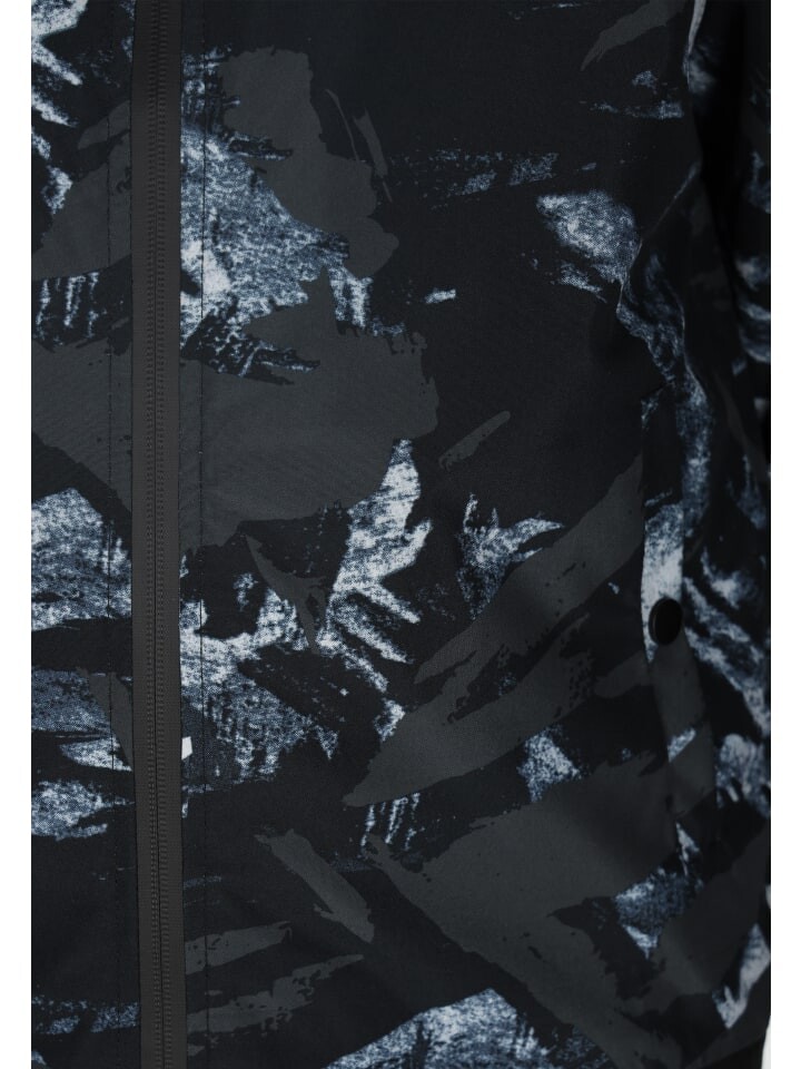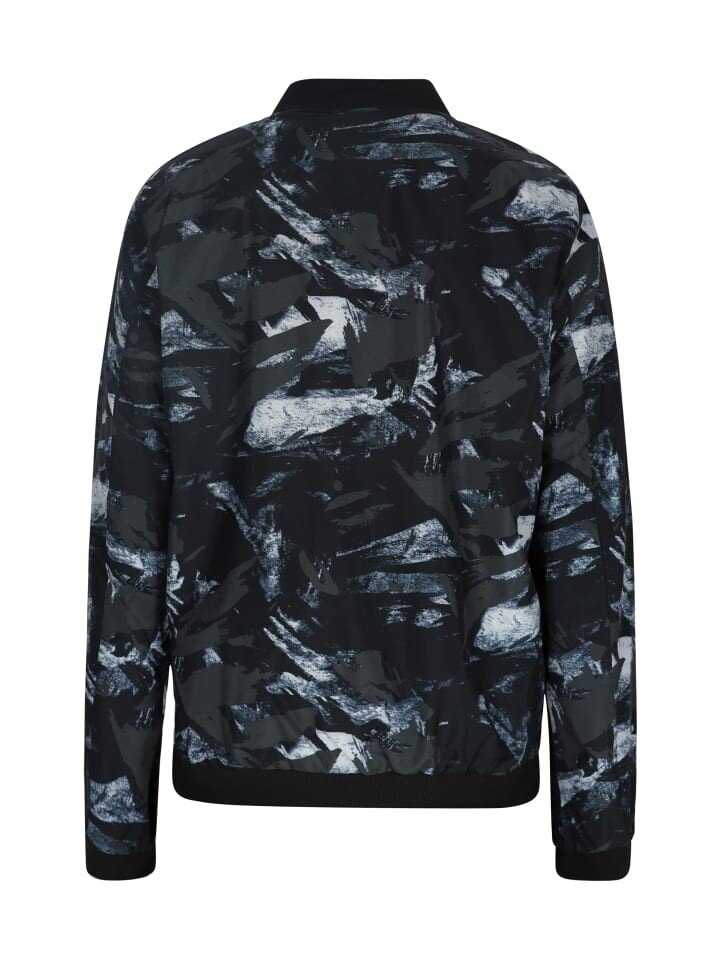 Эта куртка с молнией во всю длину спереди и воротником-стойкой отличается узорчатым дизайном абстрактных форм и текстурой, напоминающей мазки кисти. Ребристый низ и манжеты придают стильный вид этому гладкому синтетическому материалу. Эта куртка прямого кроя и прямого силуэта создает непринужденную спортивную атмосферу для повседневного ношения.