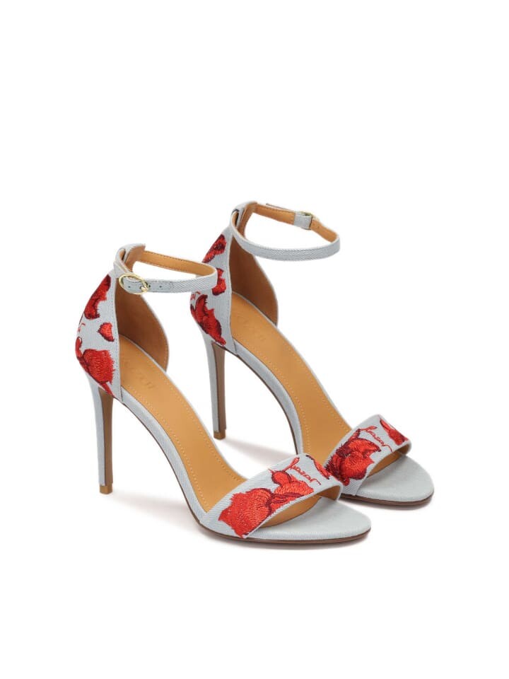 Босоножки на каблуке с закрытым каблуком – настоящая находка среди обуви для теплых дней. Выполненные из синей джинсовой ткани, они следуют модному тренду джинсовых аксессуаров, сохраняя при этом элегантность, присущую обуви на каблуке. Однако что отличает их от других сандалий, так это фирменный цветочный принт, украшающий их поверхность. Красный цветочный мотив придает им девичье очарование и оригинальность. Принт был разработан с большим вниманием к деталям, создавая уникальный рисунок, который притягивает взгляд и делает сандалии настоящим произведением искусства.