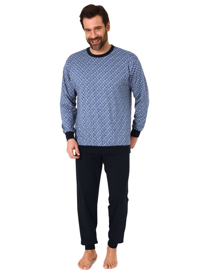 Любите чувствовать себя комфортно ночью? Тогда эта мужская пижама с длинными рукавами идеально вам подойдет, ведь она имеет удобную посадку и поэтому ее удобно носить. Эти мужские пижамы от Normann имеют элегантный минималистичный принт, их можно носить как днем, так и ночью.