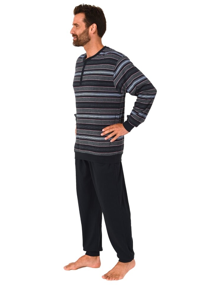 Теплые, уютные и удобные в носке эти три атрибута идеально сочетаются с этой мужской пижамой с длинными рукавами и манжетами.