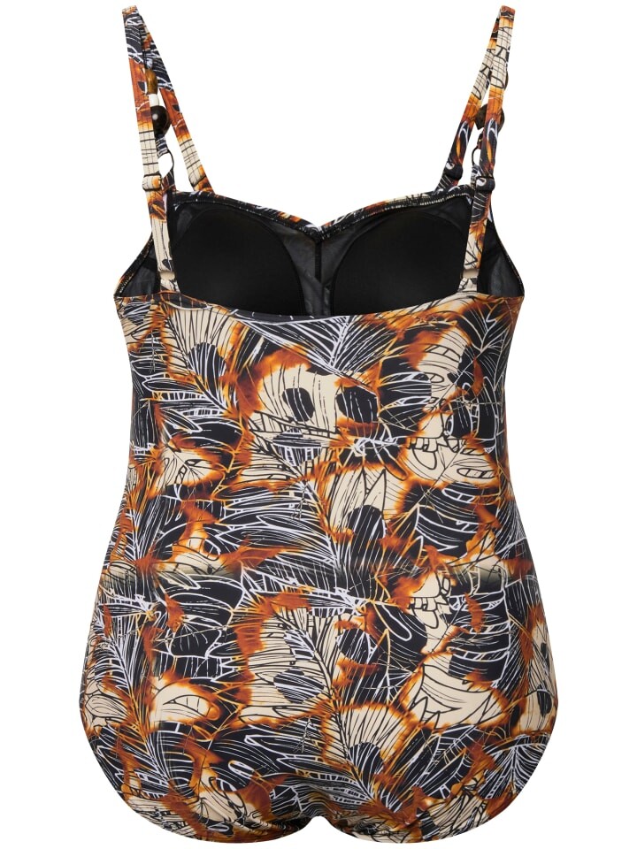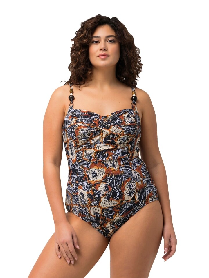 Купальник с мягкими чашками, драпировкой спереди и декоративным принтом по всей поверхности. Регулируемые бретели с декоративными бусинами. Пояс под грудью, полностью на подкладке. Изготовлено из переработанного полиэстера.
