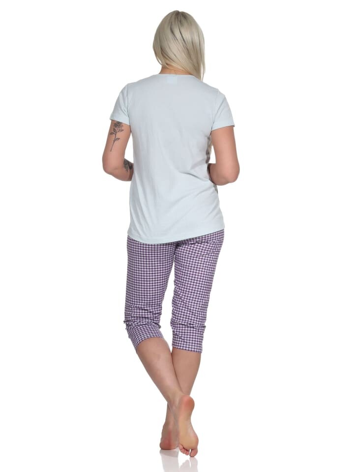 Верх пижамы с короткими рукавами и красивой надписью. Капри длиной 3/4 впечатляют элегантным клетчатым узором.