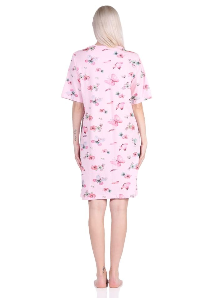 Эта красивая ночная рубашка с короткими рукавами от Normann сочетает в себе комфорт и великолепный дизайн. Ночная рубашка с половиной рукавов прекрасно смотрится с мотивом цветов и бабочек и имеет планку с пуговицами на шее.
