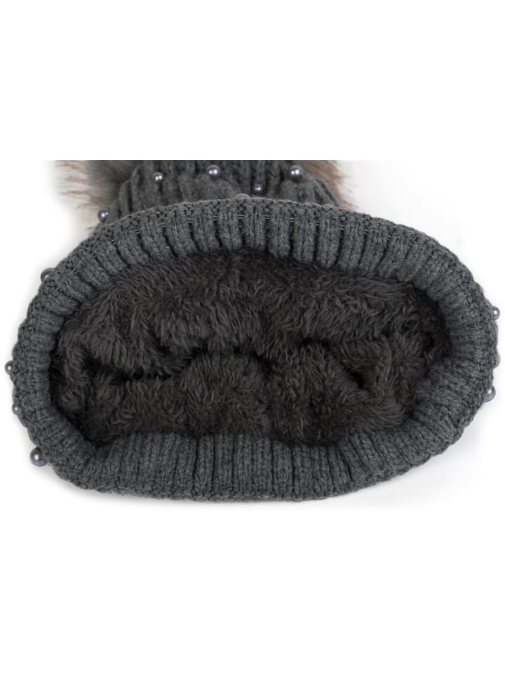 styleBREAKER стильная теплая вязаная шапка из искусственного меха с жемчугом и помпоном из искусственного меха.