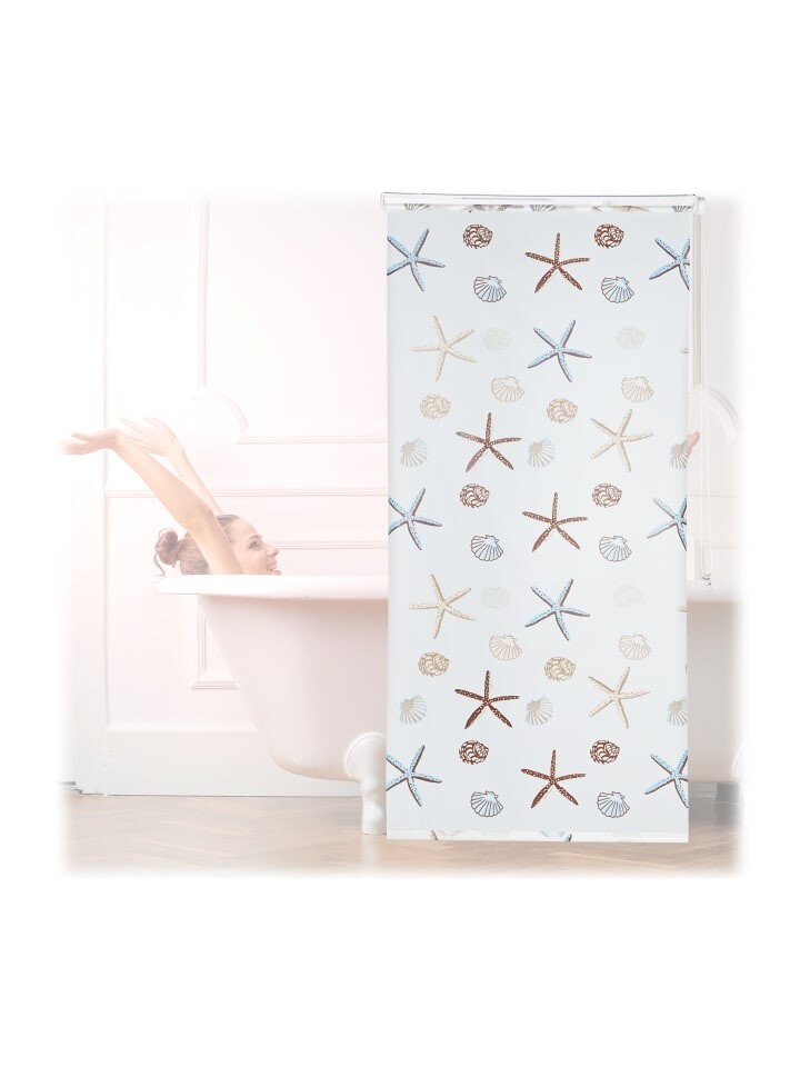 Полупрозрачная шторка для ванной с морским океанским мотивом легко крепится к потолку и является современной альтернативой традиционной занавеске для душа. Благодаря весу внизу душевая шторка прилегает прямо к душе или ванне, так что ваша плитка защищена от капель воды, и никакие раздражающие развевающиеся шторы не мешают вам во время принятия душа. Когда сухая рулонная штора не используется, просто потяните ее за трос вверх, чтобы она незаметно свернулась.