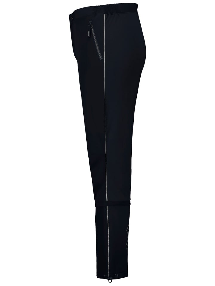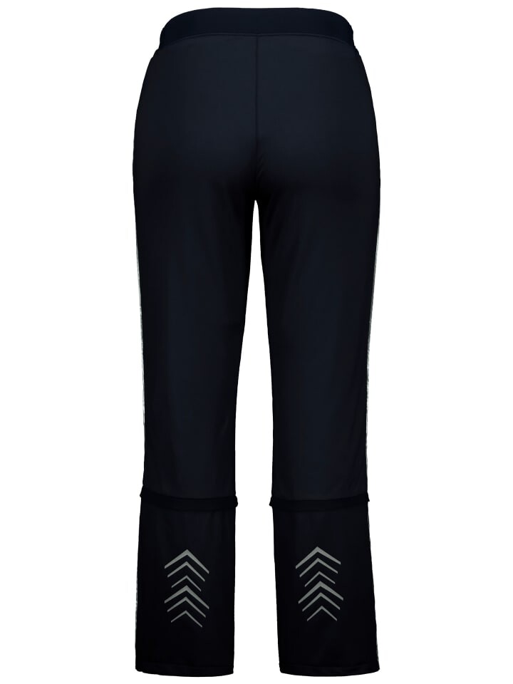 Функциональные брюки. Водоотталкивающая передняя часть с обработкой DWR, эластичная задняя часть. Эластичный пояс на кнопках, эластичный низ с модным светоотражающим принтом. 2 кармана на молнии.