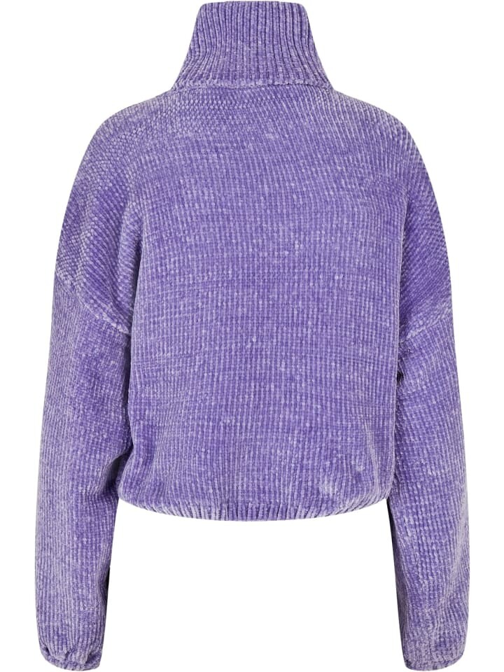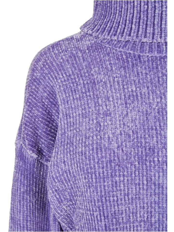 Мягкий женский свитер из блестящей синели, водолазка размера XXL в рубчик и короткий крой оверсайз – это успешный образец моды во всех отношениях. Современный стиль свитера завершается эффектом воздушного шара на концах рукавов. Свитер также имеет узкие ребристые манжеты на рукавах и подоле.