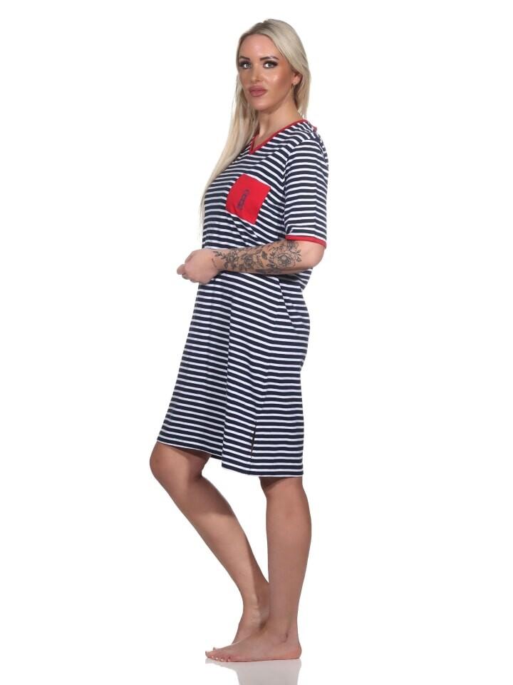 Морская полосатая рубашка сочетается с одеждой для сна и вызывает желание отправиться на море! Вот почему вы всегда будете хорошо одеты с этой летней женской ночной рубашкой с короткими рукавами в морском стиле от Normann, потому что эта рубашка для сна — идеальный выбор, если вам нравится одежда в морском стиле.