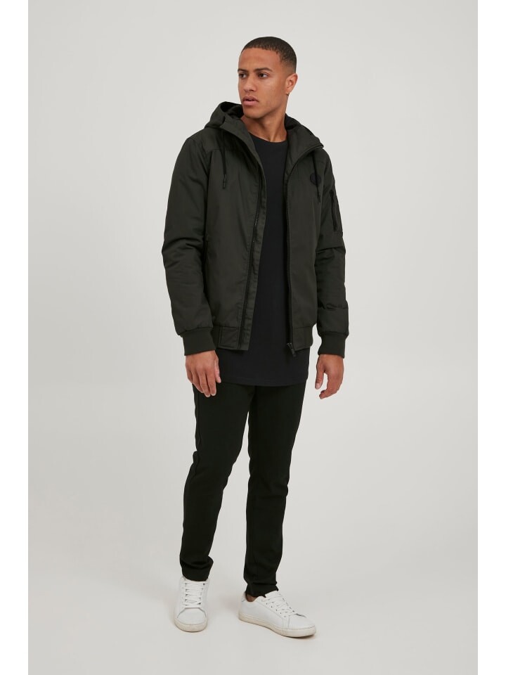 ДЕТАЛИ И ОСОБЕННОСТИ: набивка средней плотности, плотно закрывающийся капюшон с защитой подбородка и шнурками, два кармана для рук (на молнии), один внутренний карман (на кнопке) и один карман на рукавах (на молнии), эластичные манжеты (по краю и на рукавах), резина. нашивка на груди, прорезиненная молния