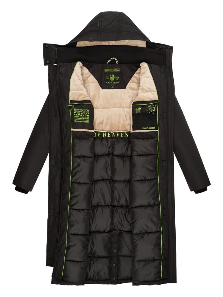 ВИД: Длинное зимнее пальто с высоким воротником, практичным магнитным клапаном, мягким регулируемым капюшоном и современным поясным ремнем от Navahoo — идеальный компаньон для холодных дней осени и зимы!